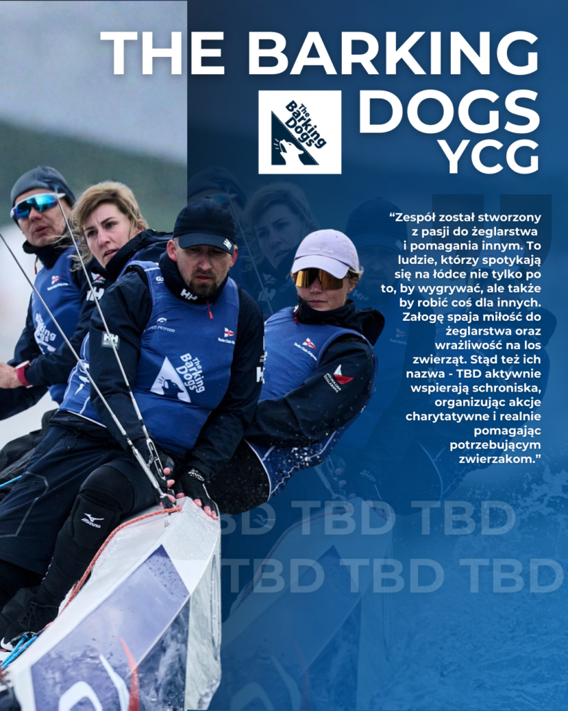 The Barking Dogs TBD – W 2025 sezonie awansowali do 1 Ligi jako beniaminki z Ligi Trójmiejskiej i udało im się pewnie utrzymać. Zespół został stworzony z pasji do żeglarstwa i pomagania innym. To ludzie, którzy spotykają się na łódce nie tylko po to, by wygrywać, ale także by robić coś dla innych. Załogę spaja miłość do żeglarstwa oraz wrażliwość na los zwierząt. Stąd też ich nazwa – TBD aktywnie wspierają schroniska, organizując akcje charytatywne i realnie pomagając potrzebującym zwierzakom. Jako jeden z nielicznych zespołów przeszli w niezmienionym składzie drogę od Ligi Regionalnej aż do 1 Ligi. Na sterze stoi Paweł Czoczys, a w składzie znajdziemy m.in. Samuela Steinborn wraz z Julią Groth i Karoliną Sołtaniuk, czyli zawodniczkami z doświadczeniem w klasach ILCA 6, 29er i 470, żeglujące wcześniej w Kadrze Narodowej PZŻ. Ważną postacią w zespole jest również Robert Mroziński – współtwórca projektu i jedna z kluczowych osób stojących za organizacyjną i koncepcyjną stroną The Barking Dogs, bez którego ta załoga w obecnym kształcie mogłaby po prostu nie istnieć. Julia stworzyła także kobiecą załogę TBD na Dr Irena Eris Żeglarskie Mistrzostwa Polski Kobiet, która w swoim debiucie sięgnęła po srebrny medal i zakwalifikowała się do Żeglarskiej Ligi Mistrzów Kobiet rozgrywanej w Berlinie. Czy w sezonie 2026 odblokują pełny potencjał i będą walczyć o podia?