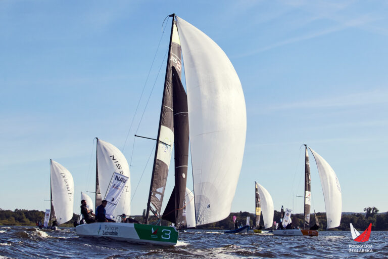 Wyniki i przebieg rywalizacji w każdym z wyścigów 1 Ligi Polskiej Ligi Żeglarskiej można śledzić na plz2025.sapsailing.com.