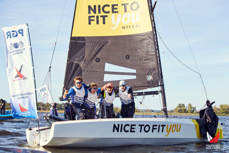 Pierwszego dnia regat panowały idealne warunki pogodowe – słońce i stabilny, choć często zmieniający swój kierunek wiatr ze wschodu. Finałową rundę bardzo solidnie rozpoczęli faworyci z PG Racing, kończąc niemalże wszystkie wyścigi w czołowej piątce, co przy oscylacji kierunku wiatru nie było proste nawet dla najlepszych ekip. Na czele była także Flota Gdynia, świetny początek zaliczyły MAG Mechelinki, natomiast absolutną niespodzianką okazała się być dyspozycja UKS Navigo. Załogę z Sopotu na pozycji trymera grota przed regatami wzmocnił Bartosz Andrzejak, medalista mistrzostw Polski w klasie ILCA i to okazało się strzałem w dziesiątkę! Ekipa, która jeszcze przed finałową rundą znajdowała się głęboko w strefie spadkowej, zupełnie odmieniła swoje żeglowanie i po pierwszym dniu zajmowała drugie miejsce. Pozostałe załogi ze strefy spadkowej nie poprawiały swoich wyników, a problemy miały też YKP Warszawa i KW Garland, które walczyły o awans z dobrze żeglującymi ekipami PRO NAUTIS i wzmocnioną SLAVA Racing.